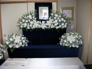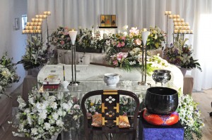 いただいた枕花もたくさん飾りました お庭にもお花と灯りを飾りました